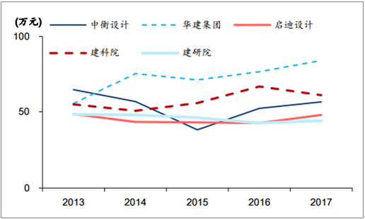 建筑設計主要公司歷年人均產值(萬元)