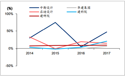 建筑設計主要公司歷年員工數同比增速(%)