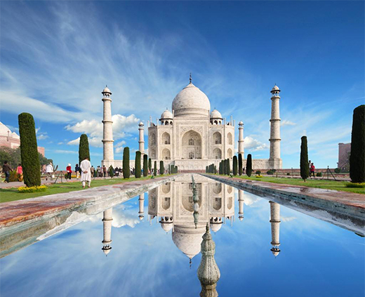 泰姬陵是印度知名度最高的古跡之一,在今印度距新德里200多公里外的北方邦的阿格拉 (Agra)城內(nèi),亞穆納河右側(cè)。是莫臥兒王朝第5代皇帝沙賈汗為了紀(jì)念他已故皇后阿姬曼·芭奴而建立的陵墓,被譽(yù)為“完美建筑”。它由殿堂、鐘樓、尖塔、水池等構(gòu)成,全部用純白色大理石建筑,用玻璃、瑪瑙鑲嵌,絢麗奪目、美麗無(wú)比。有極高的藝術(shù)價(jià)值。是伊斯蘭教建筑中的代表作。2007年7月7日,成為世界新七大奇跡之一。