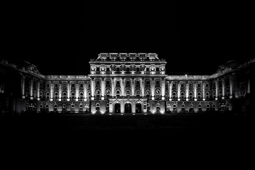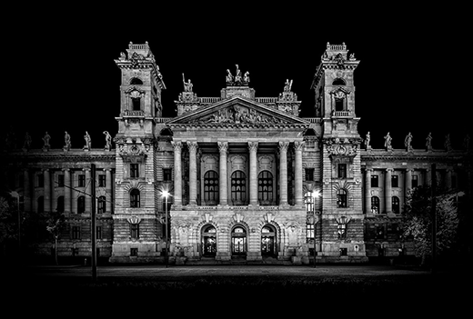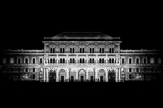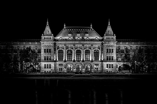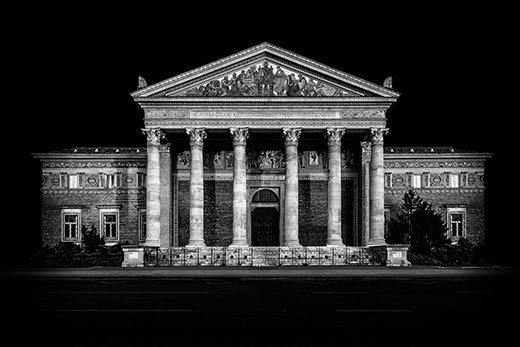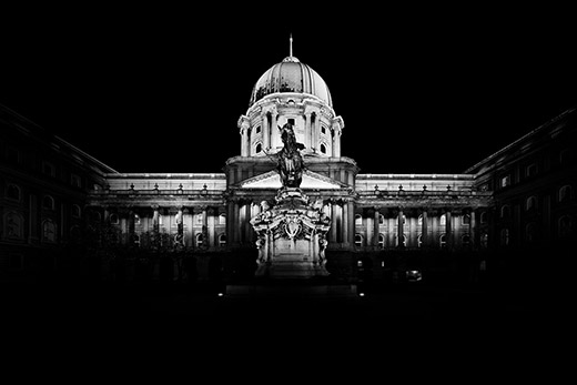 布達(dá)佩斯標(biāo)志性建筑中央錯(cuò)覺黑白照片