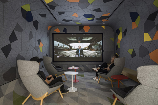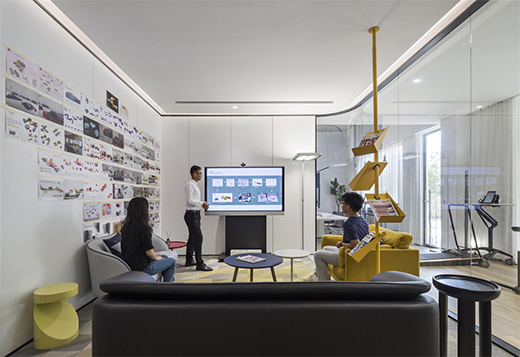 為了激發(fā)靈感和團(tuán)隊(duì)合作,設(shè)計(jì)師通過可書寫的白板墻和多功能的媒體設(shè)備,使得交流更加高效,而玻璃隔墻提供可望向健身區(qū)的透明視野,營(yíng)造出設(shè)計(jì)視覺上的連續(xù)性。