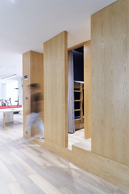 在辦公環(huán)境中,給你一個(gè)的小憩場(chǎng)所。睡眠倉為了減少外部噪音,墻壁使用的是聚酯纖維材料的吸音板,同時(shí)內(nèi)部設(shè)有電源插座和LED燈,還有專門的通風(fēng)口使空氣循環(huán)流暢。