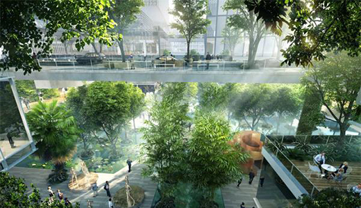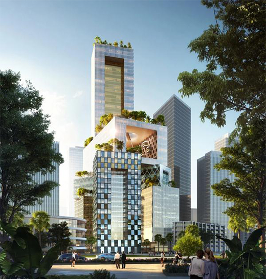 從一定程度上來說,深圳萬科3D城市是新型的摩天大樓。因為項目建筑基地被兩條道路隔開,因此設(shè)計單位MVRDV提出了堆疊空間的理念,就是通過裙樓堆疊穿插的方式,把兩個獨立的建筑基地進行連接、并賦予功能,逐漸形成“一個萬科城市”。