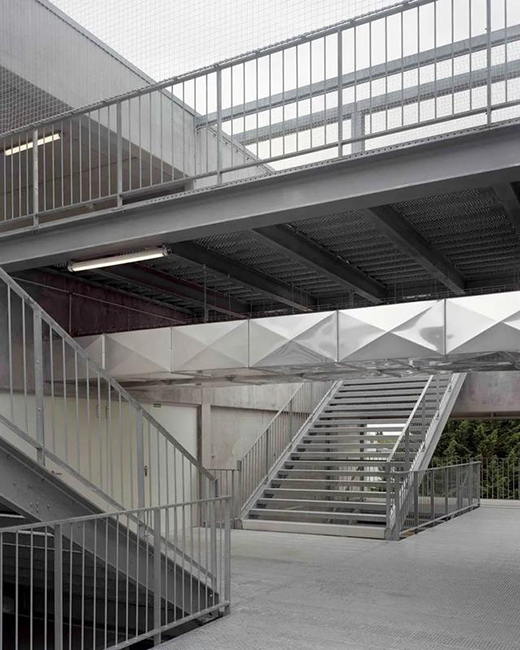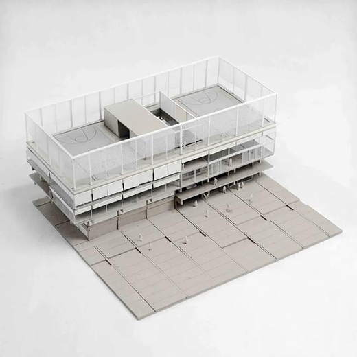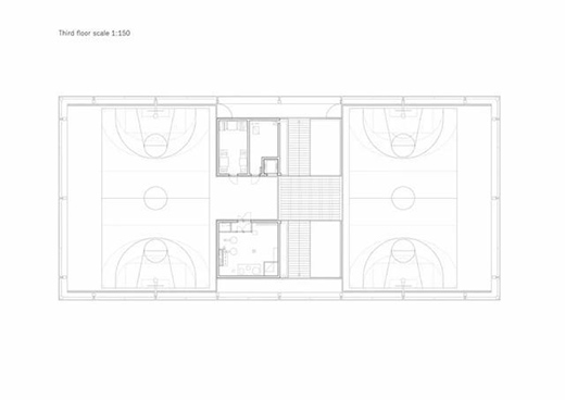 建筑通過垂直組合的方式將各種活動疊合起來,并把屋頂作為全景活動場,供足球和籃球比賽用。不同區域皆通過一個室外樓梯連接,這樣進入每個區域時都不需要穿過另一個。建筑像一個“城市架子”,以一種垂直公共空間的姿態,全天向校園訪問者開放。