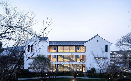 位于鑒湖湖畔,湖中有許多帆船往來,魯迅、孫中山、周恩來等人曾在此泛舟,名曰南洋舟。工程面水背山,與城市隔一山,與都市若即若離的關系,讓場地具有“大隱于市”的獨特氣質。該工程由兩幢中式仿古建筑改造而成,一幢兩層的 L型三合院,一幢三層的四合院。盡管繁復的立面裝飾風格略顯陳舊,但出自紹興工匠之手的飛檐戧角法卻是十分地道。取而代之,去之于糟粕,保留一些精巧的建筑局部,引入新的秩序,以滿足現代辦公的需要。設計組提出的戰略是:“假日辦公”。