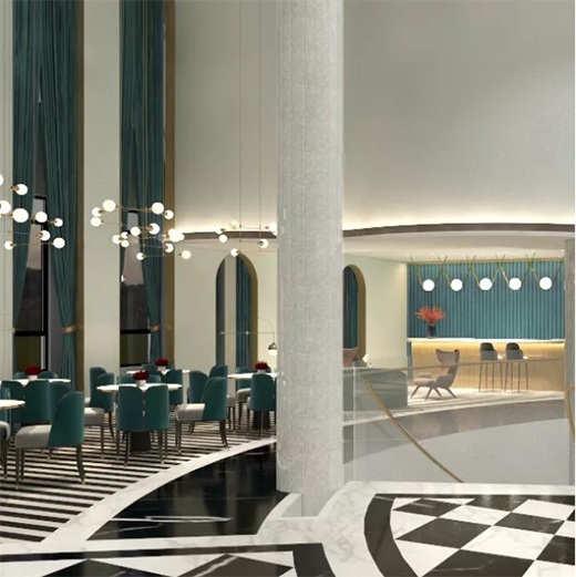 充盈著水波紋的大理石地面強(qiáng)化精致質(zhì)感。