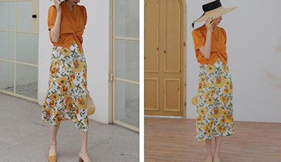 短款上衣+半身裙 喜歡溫柔中帶點酷的味道?這款襯衫絕對符合,短款的設計,V領的交叉設計,展現你更美的鎖骨,以及下擺的松緊設計處理,看起來更加有小心思,搭配下裝的半身裙,印花的顏色剛好與上衣的顏色相呼應,也算是找到了與它搭配的主,一套搭配起來就很有夏季的活潑浪漫氣息!