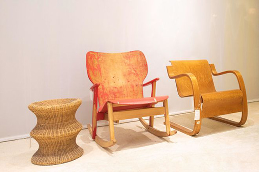 Juttu jakkara蘑菇雙凳 阿尼奧1961年、Domus Lux lounge chair 塔佩瓦拉1948年、42 birch armchair 42樺木扶手椅 阿爾瓦·阿爾托1932年(從左至右)