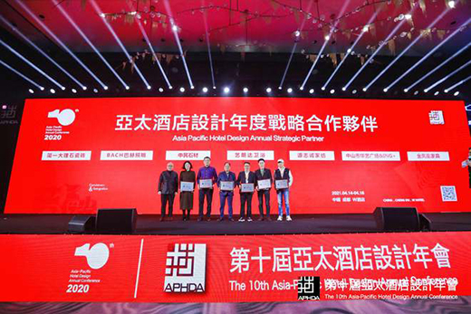 頒發(fā)2020年度亞太酒店設(shè)計年會戰(zhàn)略合作伙伴牌匾