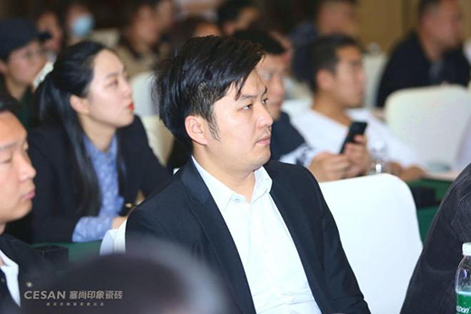 武漢恒賽諾有限公司李偉先生登臺表示:引領行業潮流,展望未來趨勢,塞尚印象自誕生起始終走在設計前沿,攜手并進的時光見證了它不斷自我突破的前瞻布局與行業使命,未來的日子希望和大家繼續共創輝煌、砥礪前行。