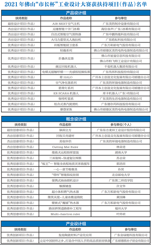 據(jù)佛山市工業(yè)和信息化局介紹,伴隨著佛山產(chǎn)業(yè)升級和經(jīng)濟高質(zhì)量發(fā)展,佛山市高度重視工業(yè)設(shè)計發(fā)展,加快實施《佛山市人民政府辦公室關(guān)于加快工業(yè)設(shè)計發(fā)展的指導(dǎo)意見》《佛山市工業(yè)設(shè)計發(fā)展扶持專項資金管理辦法》等政策,工業(yè)設(shè)計取得長足進步。