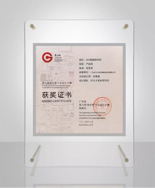 由廣東省人民政府工業和信息化廳主辦,廣東省工業設計協會承辦的第九屆“省長杯”工業設計大賽經過約4個月的賽程已經結束。本屆“省長杯”在全省21個地市,15個分賽區充分發動,從破紀錄的32051件參賽作品中,選出513件決賽作品,并最終決出30件獲獎作品和30個單項獎。其中,好太太智尊系列GW-181憑借創新的產品工業設計脫穎而出,榮獲“省長杯”工業設計大賽獎。