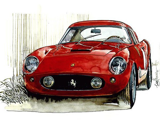汽車手繪稿=水彩+針管筆=歐式懷舊風格