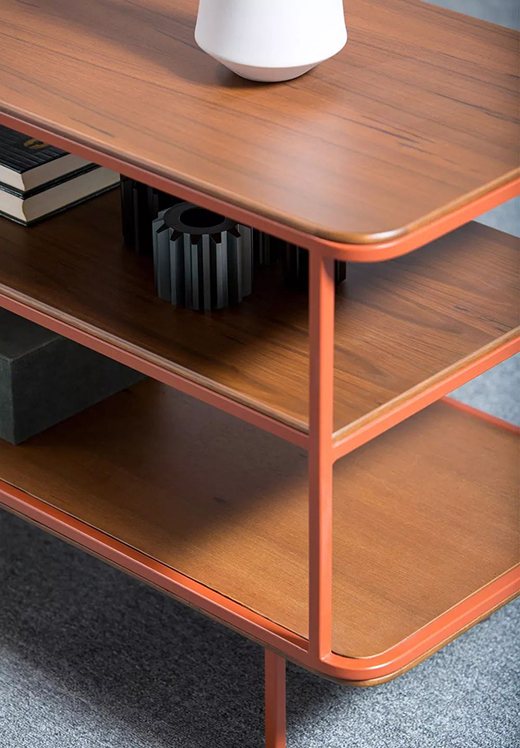 STRAT餐邊柜基于簡單的組裝原理設計為建筑家具。它由三個木制托盤和兩個鋼結構組成,通過構架線條繪制的黑色框架,提供了各種空間來組織和顯示您的對象。