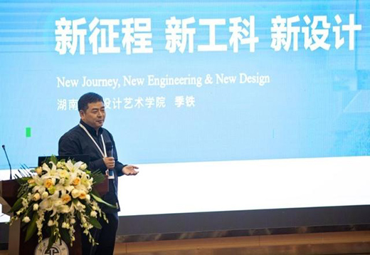 湖南大學設計藝術學院長,教育部工業設計專業教學指導分委員會秘書長、教育部非遺文創聯盟秘書長、新世紀優秀人才季鐵在報告中闡述了自己對“新征程 新工科 新設計”的理解;