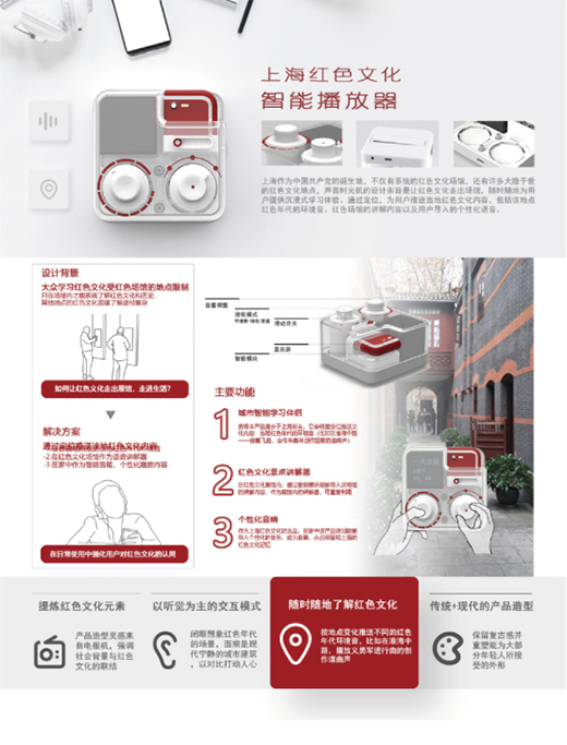設計理念:上海作為中國共產黨的誕生地,不僅有系統的紅色文化場館,還有許多大隱于世的紅色文化地點,聲音時光機的設計宗旨是讓紅色文化走出場館,隨時隨地為用戶提供沉浸式學習體驗。通過定位,為用戶推送當地紅色文化內容,包括該地點紅色年代的環境音、紅色場館的講解內容以及用戶導入的個性化語音。