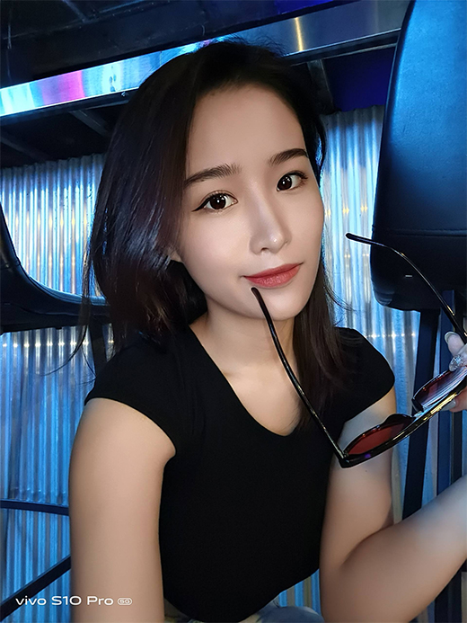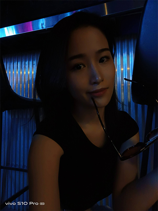 下方是通過vivo S10 Pro拍攝的夜景樣張圖,可以看到,盡管是在昏暗的環境下自拍,但是開啟極夜模式之后,成像素質依舊非常的優秀,小姐姐的五官立體清晰,看不到明顯的噪點,保留了很多的細節。