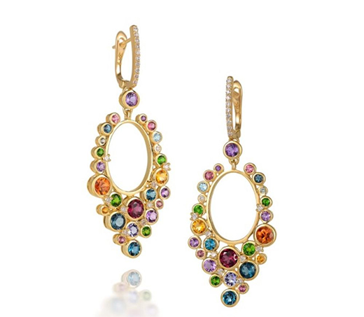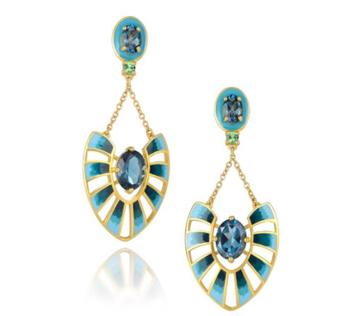 美國設計師 Martha Seely 憑借一對 Apus 耳墜、一對 Solstice 耳墜獲得2個獎項。Apus 耳墜靈感來自星座天燕座,以倫敦藍托帕石為主石,漸變藍色琺瑯勾繪出放射狀光芒;Solstice 耳墜以夏至為主題,金環外圈散落鉆石、托帕石、黃水晶、坦桑石、粉紅碧璽等圓形彩寶,色調明快而繽紛。