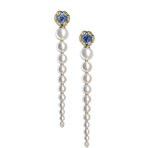 鑲嵌20顆淡水珍珠,1.2ct斯里蘭卡藍寶石,0.26ct鉆石。